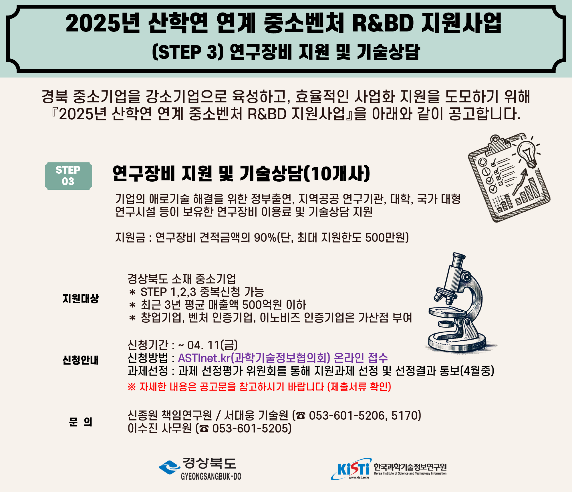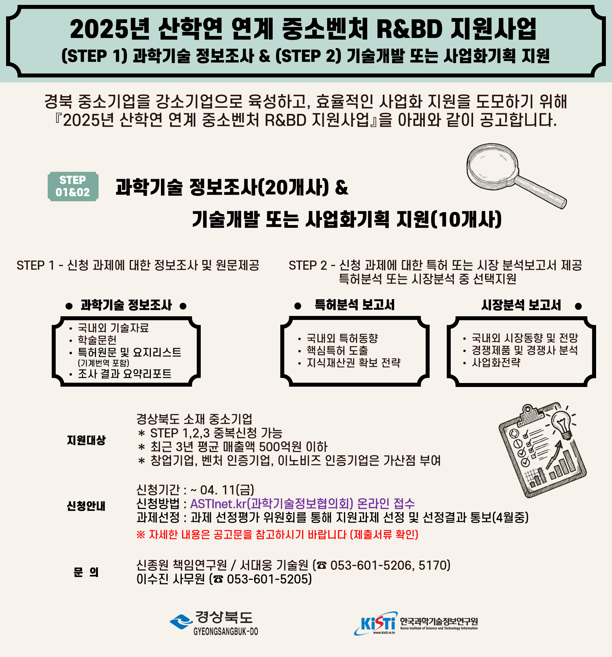 2025년 산학연 연계 중소벤처 R&BD 지원사업 시행계획 공고